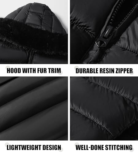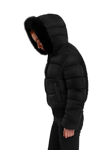 Fabric type: Shell:100%polyamide,Lining:100%polyester,Padding :100%polyeseterCare instructions: Machine WashOrigin: Imported【Functional & Comfortable Fit】- Cropped silhouette with wide elastic bottom band creates a flattering shape without bulk. Two spacious fleece-lined hand pockets keep essentials warm and secure【Luxurious Furry Hood Trim】Detachable hood with soft faux fur trim offers contemporary protection, while the fleece-lined interior prevents neck chill. Provides adjustable coverage against harsh winter elements【Windproof Winter Shield】Features a protective zip flap and elastic-sealed cuffs/hem that effectively block cold winds. the dense quilted outer fabric provides reliable defense against winter chills and light snowfall【Ultra-Warm Fleece Lined Design】Full-body plush fleece lining including hood interior provides exceptional warmth. The quilted puffer construction with premium insulation keeps you cozy in freezing temperatures while preventing filler shifting【Versatile Winter Essential】Combines fashion and function with its quilted puffer styling. The cropped length layers perfectly over sweaters or dresses.The womens hooded puffer jacket can be applied to a variety of scenes, such as daily life, sports, gatherings, outdoor and so on Perfect for everyday use. supreme materials and excellent craftsmanship ensure long-lasting durability.