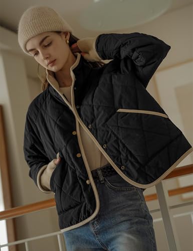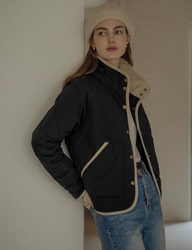 Faleave Women's Quilted Jacket Button Down Puffer Jacket Lightweight Coats Padded Outwear with Pockets