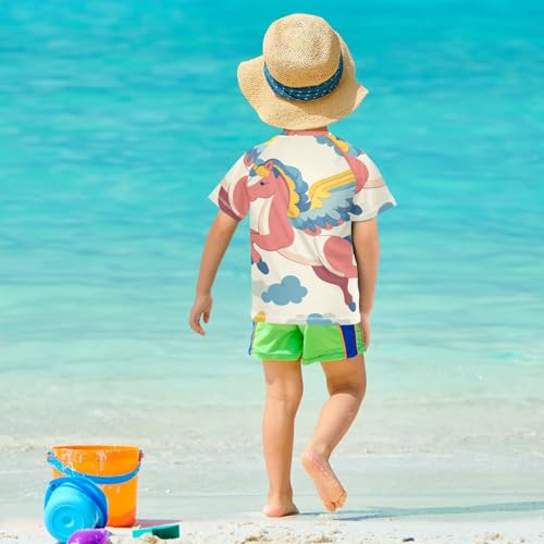 Boys Short Sleeve T-Shirts Unicorn Horse Flying Cartoon Rashguard Kids Swim Shirts Sun UPF 50+ 1
