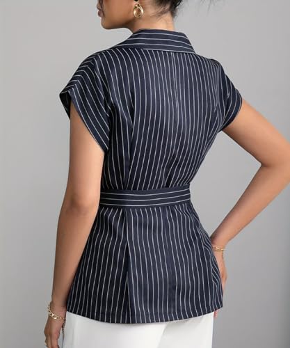 More information about Women's Casual Cap Sleeve V Neck Blazer Vest Tops Striped Single Breasted Business Suit Vest with Belt