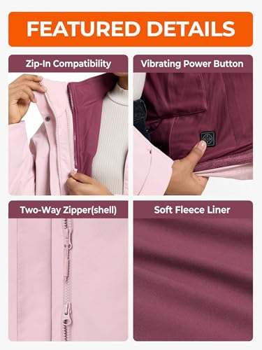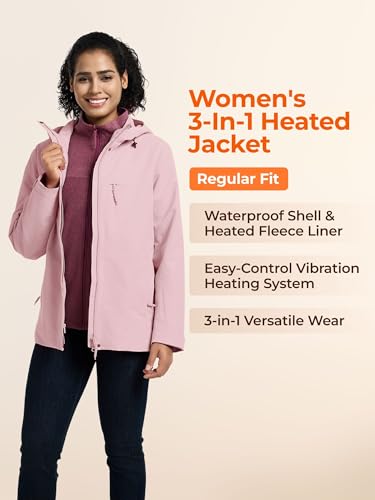 ORORO Women's 3-in-1 Heated Jacket with Waterproof Shell and Heated Fleece Liner, Fleece Heated Jacket with Battery