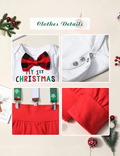 KANGKANG Baby Boy Christmas Outfit My First Christmas Ever Gentleman White Rompers + Suspender Pants 2Pcs Christmas Set
