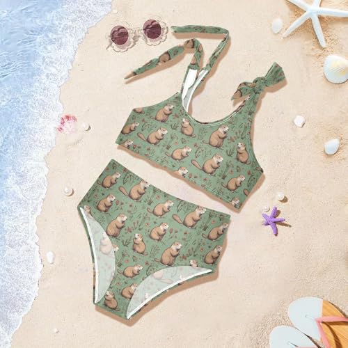 Toddler Girls Bikini Set Groundhog Swimsuits Kid Bowknot Swimwear 2 Piece Bathing Suit 3-12T