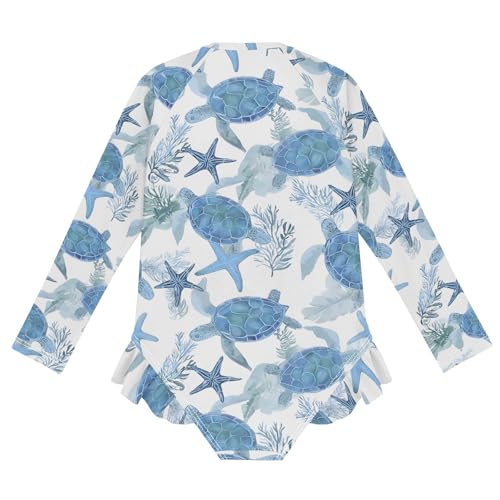 ALAZA Toddler Swimsuit Girl Bathing Suit Swimwear Rash Guard Beach Coastal Turtles Long Sleeve 3T