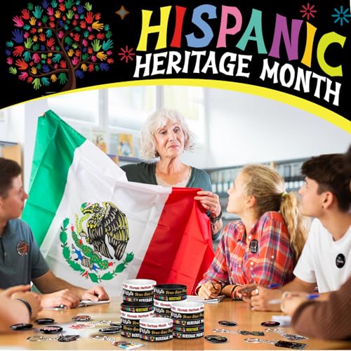 Kenning 300 Pcs Hispanic Heritage Month Giveaways Acrylic Keychains, Silicone Bracelets, Button Pins Gift Bulk for Women, Men, and Cultural Celebrations 5