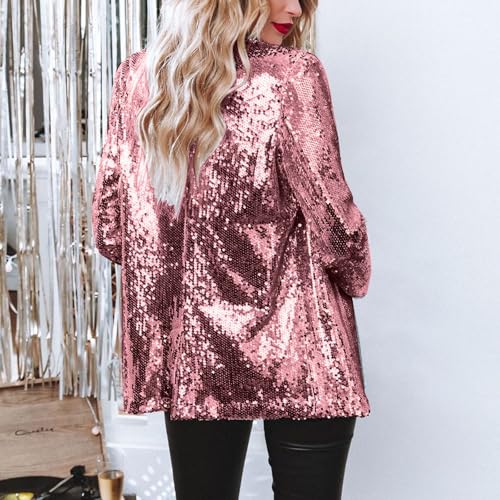 Women's Sequin Blazer Sparkly Party ChristmasLong Sleeve Lapel Open Front Glitter Sequin Jacket 5