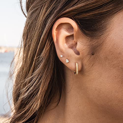 Thick Oval Huggie Earrings | Minimalist Oblong Hoops in .925 Sterling Silver | Paved CZ Chunky Small Hoops 5