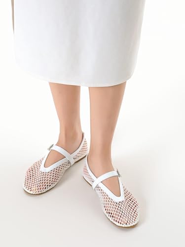Mesh Flats for Women Mary Jane Flats with Straps Round Toe Buckle Slip on Flats Comfy Daily Casual Ballerina Shoes