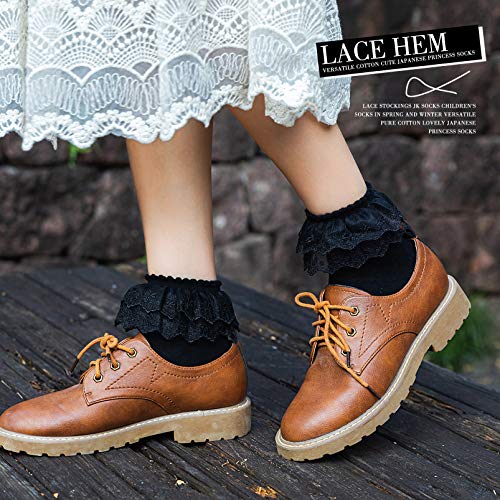 SEMOHOLLI Women Lace Ankle Socks Ruffle Frilly Cotton Socks Trim Double Layer Lace Girl socks 5