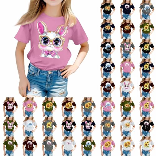 Kids Girls Cotton Cute T-Shirt Short Sleeve Graphic Tees Cute Prints Blouse Tween Girls Crewneck T-Shirt Summer Tops 6