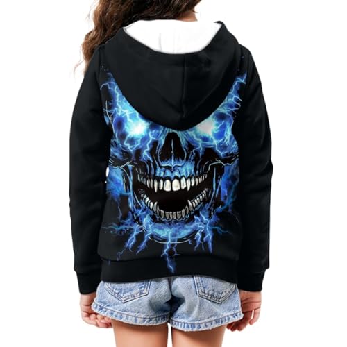GLUDEAR Kids Boys Girls Zip Up Hoodie Cool Skull 3D Printed Hooded Sweatshirt Hoody Coat with Pocket
