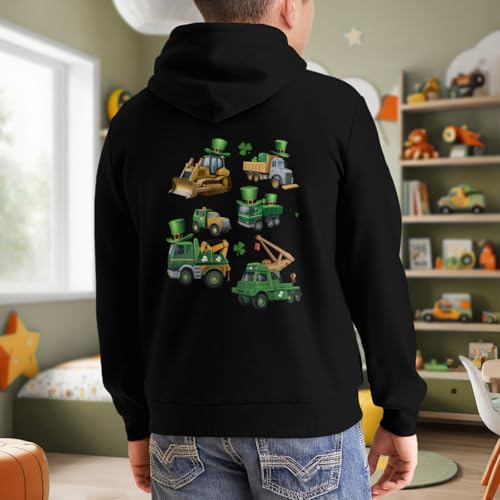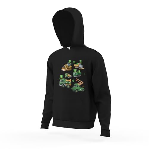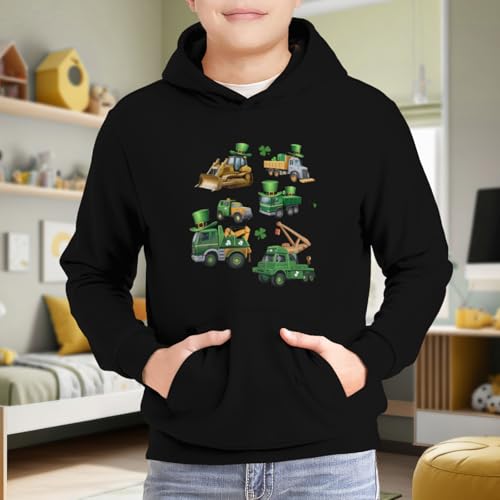 Kids Cute Irish Construction Truck Crane St Patricks Day Boys Girls Lightweight Kangaroo Pocket Fleece Hoodies