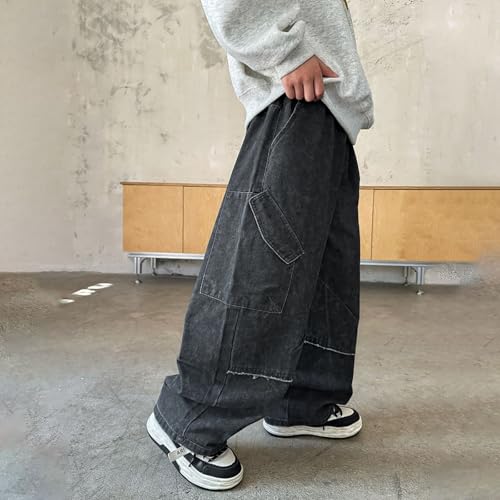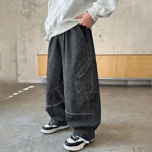 popular ! Tween Boys Baggy Jeans Kids Casual Loose Wide Leg Denim Pants with Pockets, Loose Elastic Waistband Jeans for Boys