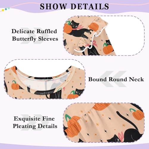 Black Cat Pumpkin Star Girls Shirts Cotton Long Sleeve Ruffle Toddler Tee Tops 4