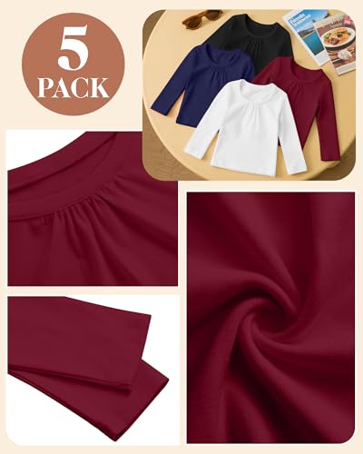 More information about 5 Pack Girls Long Sleeve Shirts Crewneck Loose Fit Knitted Tops Basic supple Multipack Layering Tees for Teen Girls