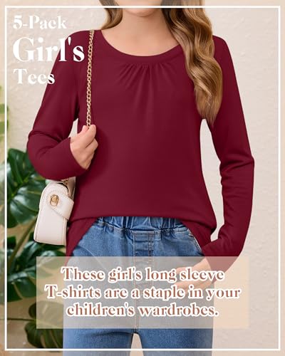 5 Pack Girls Long Sleeve Shirts Crewneck Loose Fit Knitted Tops Basic Soft Multipack Layering Tees for Teen Girls 5