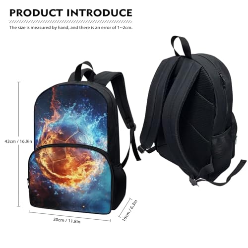 More information about Fire Basketball Backpack for School Boy with Lunch Bag Pencil Case and Zipper Book Cover Laege Capacity Backpacks Set 4 in 1 Birthday Gifts for Sons