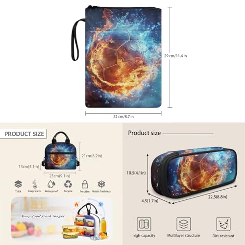 Fire Basketball Backpack for School Boy with Lunch Bag Pencil Case and Zipper Book Cover Laege Capacity Backpacks Set 4 in 1 Birthday Gifts for Sons 1