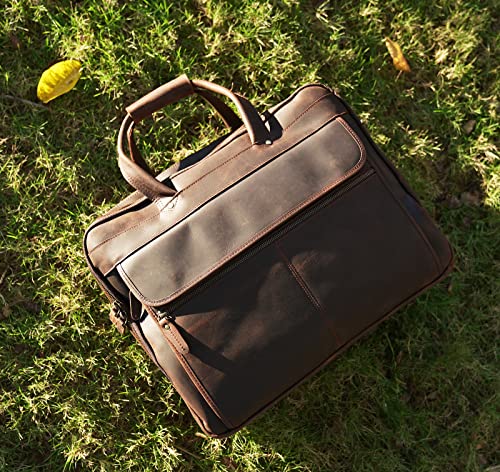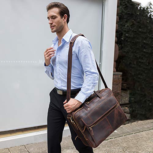 Polare 18'' Thick Full Grain Leather Fit 17.3" Laptop Business Briefcase Work Bag Overnight Bag For Men 5