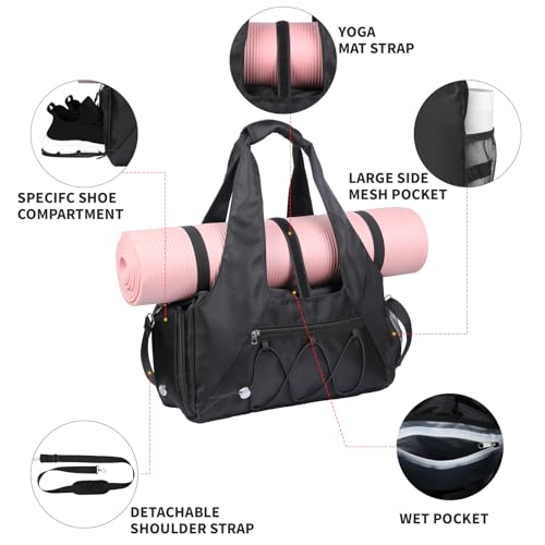 • 【Dry Wet Separated And Shoe Compartment】: The workout bag is equipped with wet and dry separation bag to help you separate dry goods and wet goods. It is suitable for your family travel to pack entire toiletries, wet clothes or towels. The yoga gym bag is equipped with an independent shoe compartment to help you better put your shoes in the travel bag. Even if the shoes become dirty, they will not dirty other items,Additional storage pockets to organize your items and gym accessories.