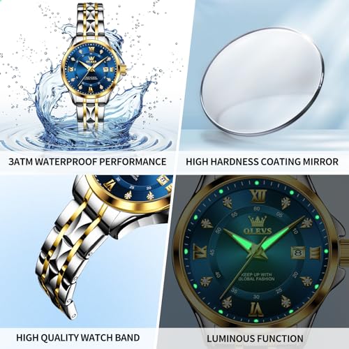 OLEVS Watch Women Two Tone Watches for Women with Date Dress Womens Watch for Small Wrists Luxury straightforward Read Watches for Woman Waterproof Blue/Black/Gold/Silver Dial Reloj para Mujer