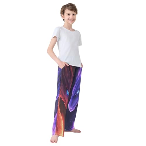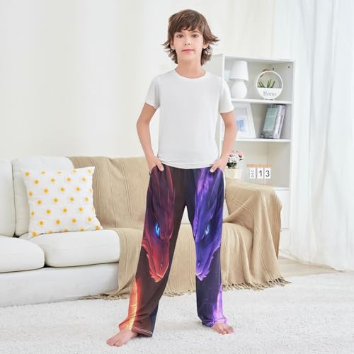 Red Purple Dragons Glowing Fire Pajama Lounge Pants with Pockets Sleepwear Soft Elastic Waist PJ Bottoms 6-14 Years 6