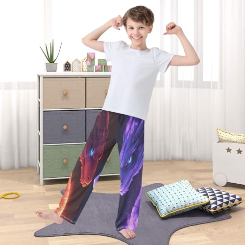 popular ! Red Purple Dragons Glowing Fire Pajama Lounge Pants with Pockets Sleepwear tender Elastic Waist PJ Bottoms 6-14 Years