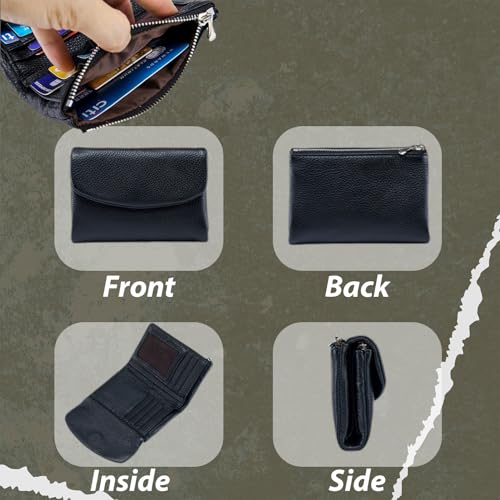 Unisex Pebble Leather Wallet,5.3In Short Genuine Leather Coin Card Holder,Unisex Genuine Leather Coin Purse with Credit Card Holder,Can Hold Coins, Id Cards (Black Red)