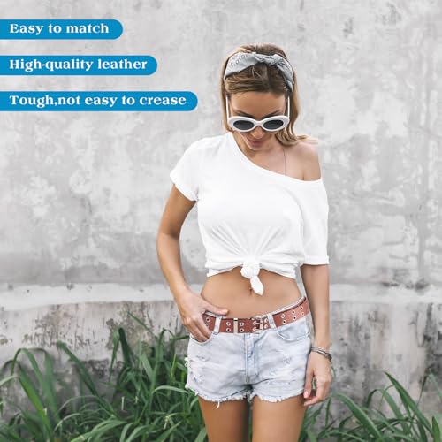 Chuarry 7 Pcs Grommet Belts for Women Double Grommet Belts Punk Leather Belts with Double Studded Holes Buckle Vintage Metal Rock Jeans Belt for Women Men Ladies
