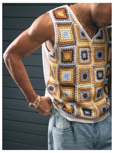 Verdusa Men's Boho Floral Crochet Sweater Vest Summer Streetwear Going Out Knit Tops 6