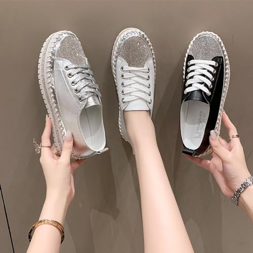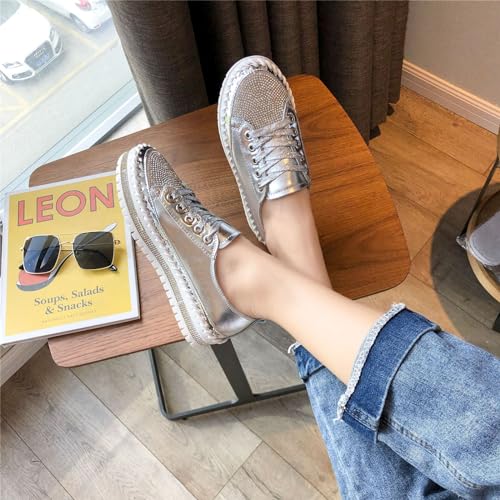 Women's Sequins Diamonds Flat Lace Up Fashion Sneakers pleasant Shiny Dazzling Wedding Bridal Fashion Walking Shoes