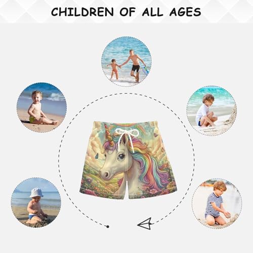 Pigsaly Boys Swim Trunks Rainbow Flower Unicorn Boys Board Shorts Swimsuit Swimwear Summer Bathing Suit XS 5