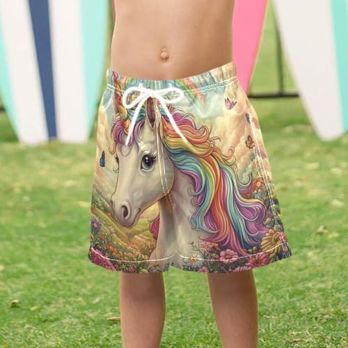 Pigsaly Boys Swim Trunks Rainbow Flower Unicorn Boys Board Shorts Swimsuit Swimwear Summer Bathing Suit XS 4