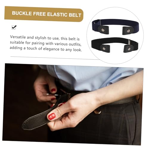 Yardwe 2pcs Stretch Faux Belt for Women Men No Buckle Wide Elastic Adjustable Fashionable for Jeans Shorts Casual