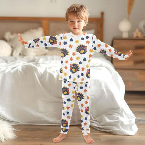 Pajama Sets Long Sleeve Turkey Leaves Pattern Print Soft Comfy Sleepwear 2 Piece PJS 3-8T 2