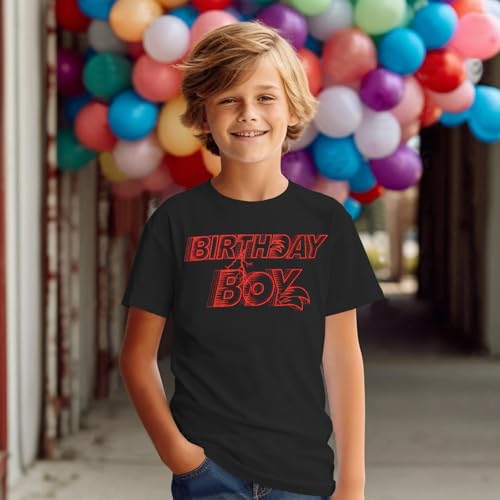 Fabric type: Cotton BlendOrigin: ImportedClosure type: Pull OnNeck style: Crew Neck【Material】Birthday boy shirt is made of supreme cotton blend, breathable and flexible, ensuring a lightweight and cozy fit for 4th, 5th, 6th, 7th, 8th, 9th, and 10th birthday parties. Whether playing games or celebrating, this kids' birthday party outfit keeps your little one cool and comfortable. It’s an ideal birthday party tee for boys who love fast-paced adventures and lightning-speed fun!【Design】The birthday boy t-shirt features a bold, eye-catching print with electrifying lightning accents, giving it a high-energy vibe perfect for a 4-10 year old’s birthday bash. The contemporary Birthday Boy text adds a celebratory touch, making it a must-have birthday party outfit. Whether he’s into speedy heroes and epic quests, this boys birthday shirt will make him feel like the star of the day!【Birthday Boy Outfit】Boys birthday shirts is suitable for boys from 4 to 10 years old. Please check the size chart carefully for the size. Our kids birthday boys t-shirt, boys birthday outfit, this short-sleeve tee is a versatile and stylish choice. A must-have birthday party outfit for fast, fun, and unforgettable moments!【Birthday Gift for Boys】Looking for the perfect birthday gift? This birthday boy T-Shirt is a hit for 4t, 5t, 6th, 7th, 8th, 9th, and 10th birthdays! The fun lightning-themed print and soft fabric make it a thoughtful and practical present. He will love how comfortable and stylish this kids' birthday party outfit is. Give your little boy a memorable birthday experience with our boys birthday t-shirts - the perfect birthday gift shirt for your kids.【Occasions】This birthday boy shirt is the ultimate party outfit for 4-10-year-old boys. Great for birthday photos, cake smashes, or themed parties, it adds a fun and festive touch to any celebration. Pair it with jeans, shorts, or party hats for a complete birthday look, four five six seven eight nine ten boys birthday shirts it a top choice for kids who love action-packed adventures, this short sleeve summer tee ensures a memorable and stylish celebration! Perfect for everyday use. High quality materials and excellent craftsmanship ensure long-lasting durability.