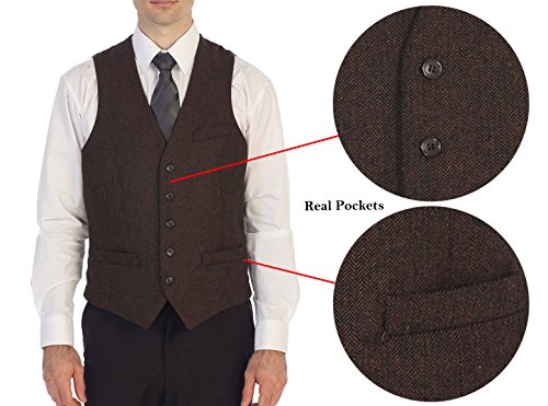 popular ! Gioberti Men's 5 Button Slim Fit Formal Herringbone Tweed Suit Vest