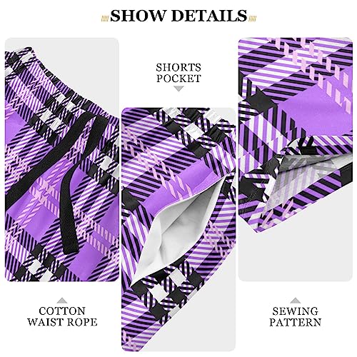 Why Choose Mens Pajama Shorts Purple Plaid Sleep Shorts Men Tartan Pajama Bottoms With Pockets Drawstring Lounge S?