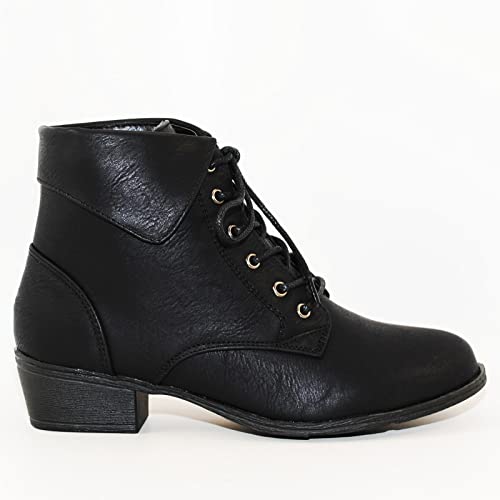 Why Choose TOP Moda EC89 Women's Foldover Lace Up Low Chunky Heel Ankle Booties?