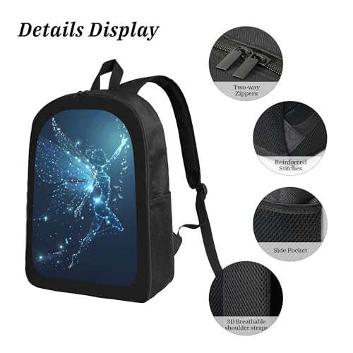Backpack Set 3-in-1: Backpacks size is (17*12.6*5.1 Inch) with lunch bag size is (9.8*7.9*3.5 Inch) and pencil bag size is (8.7*4.3*1.8 Inch)Enduring: The everyday back pack made of 600D high-quality 600D Oxford cloth with a water-resistant coating, ensuring it's both sturdy and resistant to withstand the rough and tumble of daily usage. Coupled with smooth two zippers and reinforced stitchingLarge Capacity: The contemporary backpacks has 1 main compartment and 2 mesh side pockets (fit laptop padded for 14 inοΌ15 in,15.6 in) to provide roomy space for necessities.The two side pockets for water bottles or umbrella.The matched insulated lunchbox is compact but spacious enough to storage any essential as a lunch bag,toiletry bag and etc.The small pouch for pencil etcLightweight & Comfortable: The daypacks has padded adjustable straps that make it comfortable to carry, the body side and shoulder straps have excellent thick breathable mesh padding, make you comfortable to carry. Lunch Bag lining is food grade PEVA with cotton padding in the middle has adjustable shoulder strap & top handle Great daypacks for camping, shopping, cycling, traveling, picnic, beach, gym, outdoor sport etcDurable Lightweight: The backpacks set are made of durable waterproof material, it is printed exquisite fashion color design, bright brilliant colors, it would not fade, no smell. Very suitable for backpack, laptop backpack, daily backpack, hiking, camping, cycling, outdoor sports, picnic, casual travel etc. Perfect for everyday use. supreme materials and excellent craftsmanship ensure long-lasting durability.