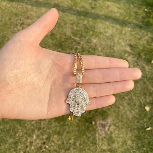 Hip Hop 14K/white Gold Plated Micro Iced Out Hamsa Hands Pendant with 24" Franco Chain Necklaces for Men Women 5