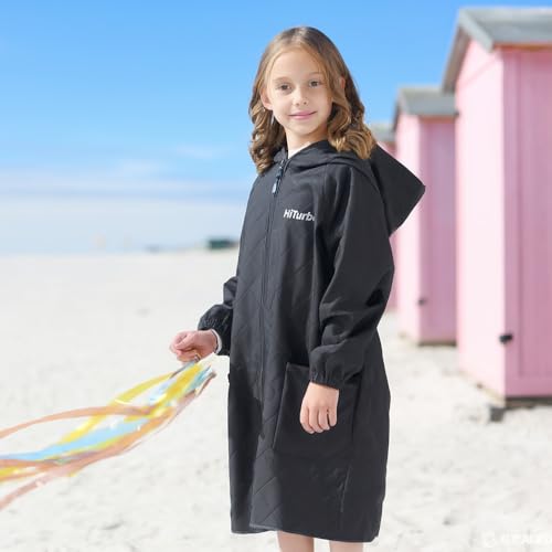 popular ! Hiturbo Kids Swim Parka: Diamond Quilted Waterproof Swimming Jacket - Hooded Swimmer Coat with swift-dry Towel for Boys Girls