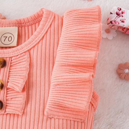 Baby Girl Clothes Newborn Infant Summer Outfits Ruffle Romper and Shorts with Headband Sets for 0-3-6-9-12-18 Months 1