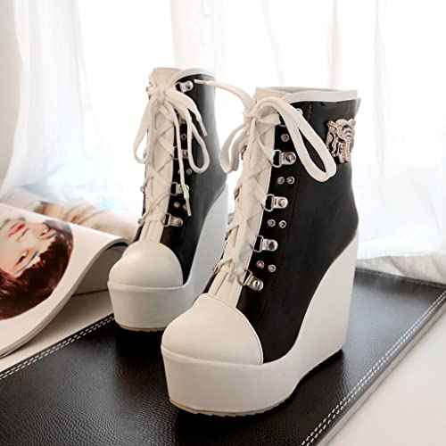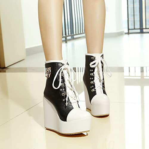Women's Round Toe Wedge Platform Dress Ankle Boots Lace Up Chunky High Heels Dressy Short Booties
