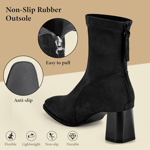 Trakxy Women's Square Toe Ankle Boots Faux Suede Low Block Heel Chelsea Boots Women Shoes 3