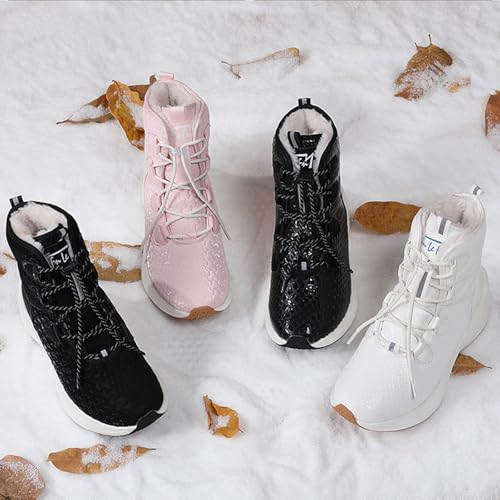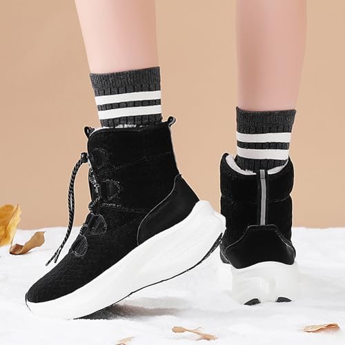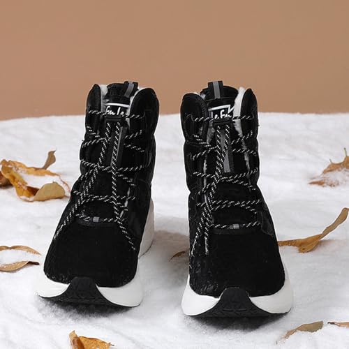 Women Winter Snow Boots With Luminous relaxing Round Toe Platform Wedge Lace-Up cozy Fur Lining Anti-Slip High-Top Winter Boots Cold Weather Outdoor Water Proof Walking Ashion Booties