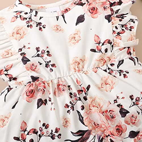 Toddler Girl Romper Toddler Kids Girls Infant Fly Sleeves Floral Lace Romper Jumpsuit Hairband Set (Pink, 12-18 Months) 2