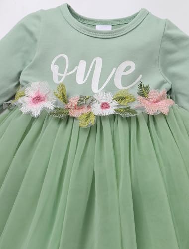 ODASDO Baby Girls First Birthday Outfit Cotton Long Sleeve Tulle Tutu Princess Dress with Bowknot Headband Set