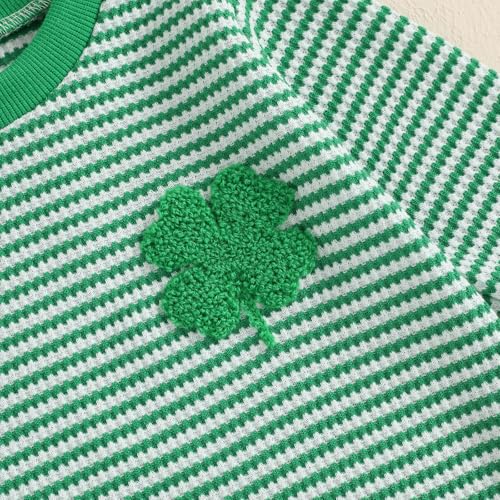 VISGOGO Baby Sweatshirt Romper Striped Heart/Clover Waffle St.Patrick Day Long Sleeve Irish Onesie Jumpsuits