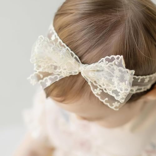 popular ! Baby Girls Bow Lace Headband Cute tender Hairband White Butterfly Knot Headbands for Newborn Infants Toddlers Kids Christening Baptism Birthday Party Hair Accessories(Beige)